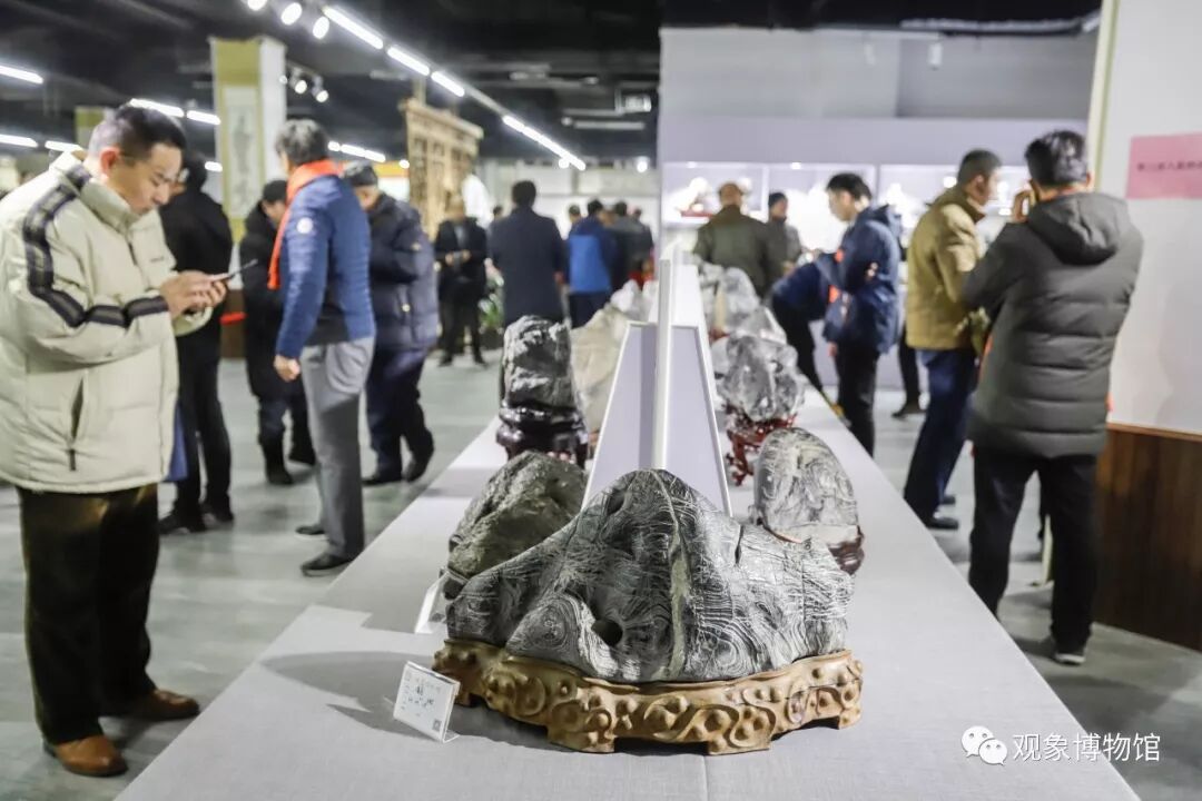 2019年1月12日,由观象博物馆发起、主办的“灵璧石边界学术研讨会暨老石友藏品联展”在徐州观象艺术街举行。会展为期9天,来自徐州、淮北、南京、蚌埠、宿州等地的石友300余人参加了当日上午的研讨会。展出精品奇石近400方,涵盖灵璧石多品种,多种罕见品种也在此次会展中亮相。精品数量之多,品种之罕,成为此次会展一大亮点。
